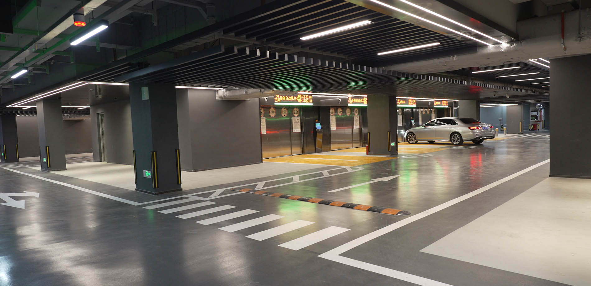 項目位于深圳灣最高地標(biāo)處,一經(jīng)面世,震撼全場!該智能庫融合周邊商業(yè)、綜合辦公、樞紐、濱?;顒拥仍赜谝惑w,共建成ABC三套獨立系統(tǒng)庫,每個獨立庫配有4個升降機,大大增加停車位數(shù)量。
