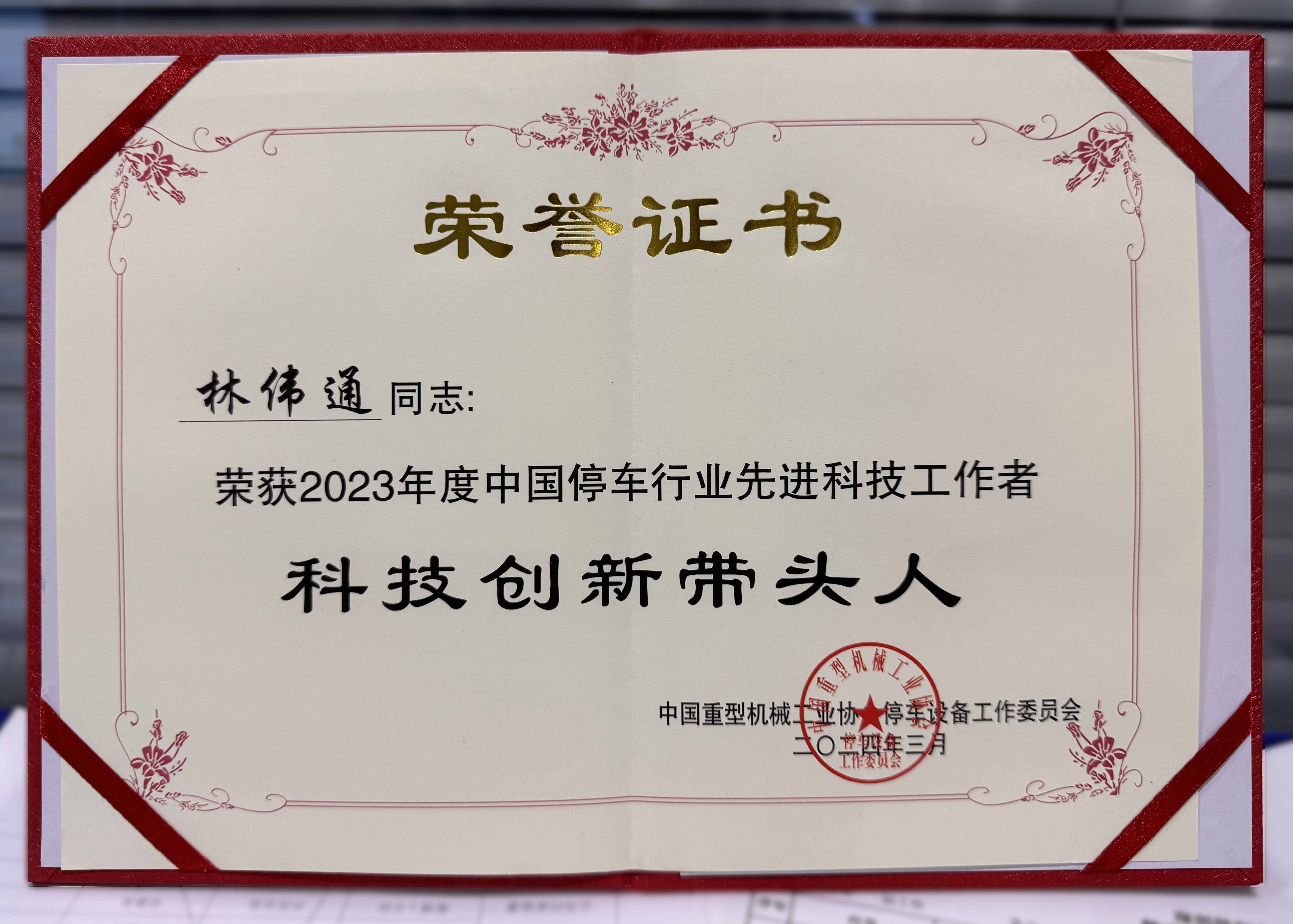 深圳偉創(chuàng)總經(jīng)理林偉通、副總經(jīng)理郭勇金分別獲得住房和城鄉(xiāng)建設(shè)部科技計(jì)劃項(xiàng)目科技創(chuàng)新帶頭人稱號及2023年度中國停車行業(yè)先進(jìn)科技工作者榮譽(yù)稱號。此外,在國家市場監(jiān)督管理總局特種設(shè)備安全監(jiān)察局研究的《開展機(jī)械式停車設(shè)備行業(yè)發(fā)展?fàn)顩r調(diào)研和監(jiān)管對策優(yōu)化》項(xiàng)目中兩人均榮獲突出貢獻(xiàn)獎。